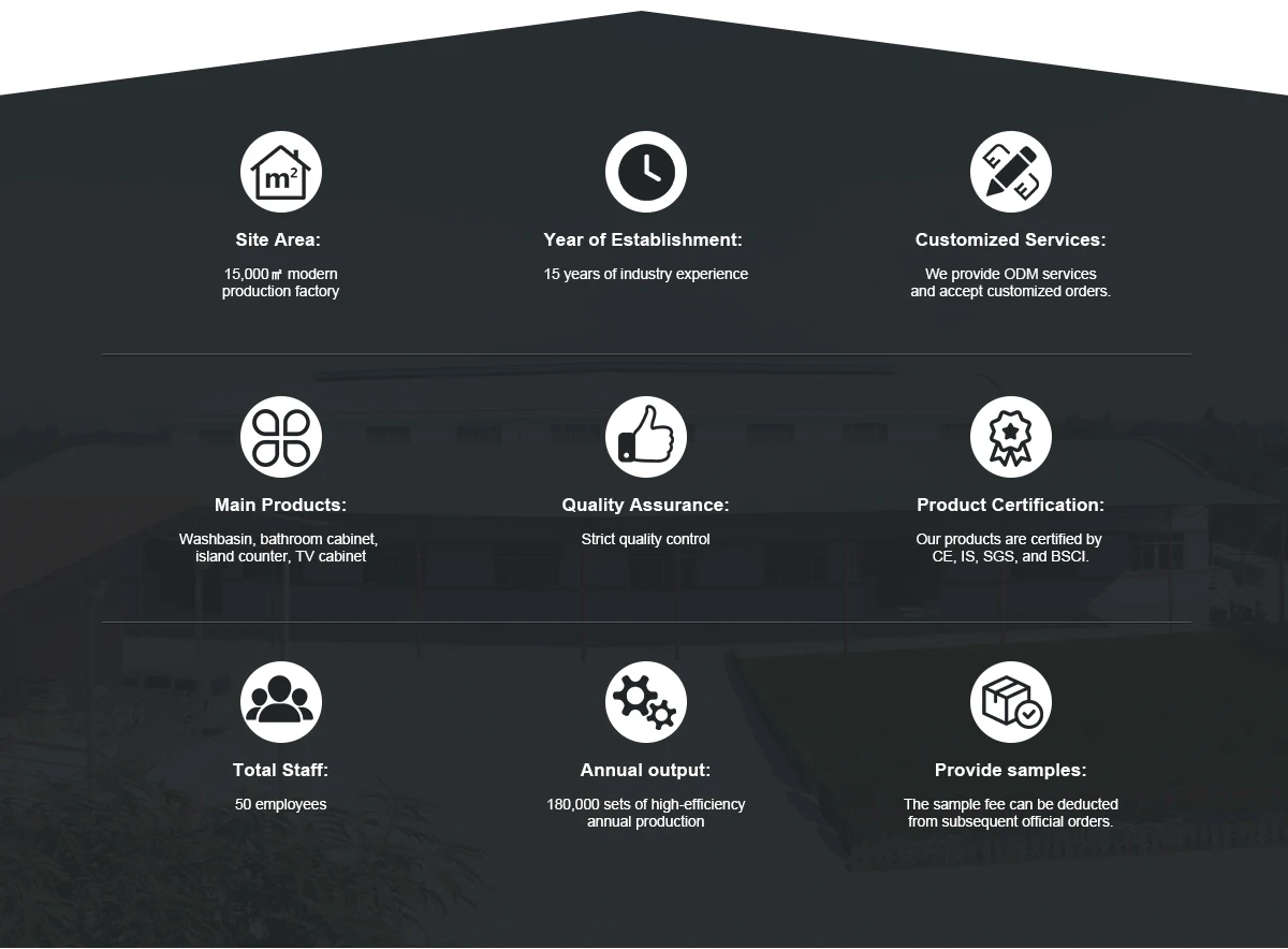 ผลิตภัณฑ์หลัก:อ่างล้างจานกระจกโต๊ะเครื่องแป้งห้องน้ำเคาน์เตอร์หินกระจกอุปกรณ์ห้องน้ำ